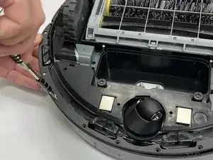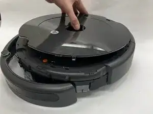 Чтобы получить доступ к отсеку аккумулятора iRobot Roomba 692, переверните пылесос iRobot Roomba 692 вверх дном.