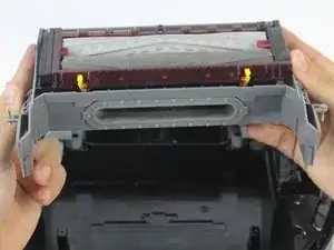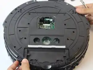 Медленно приподнимите верхнюю панель, остерегаясь повреждения компонентов пылесоса, чтобы открыть доступ к материнской плате.