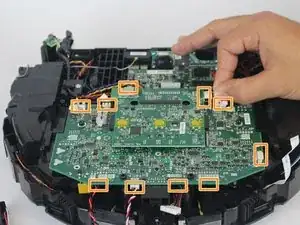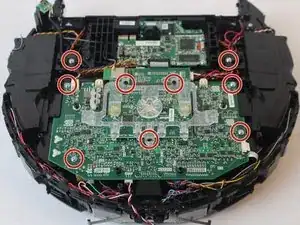 Снимите девять серебристых винтов 6,4 мм, крепящих материнскую плату к корпусу пылесоса и прозрачной пластиковой защите, используя крестовую отвертку Phillips #1.