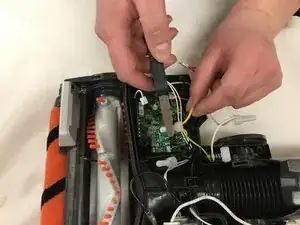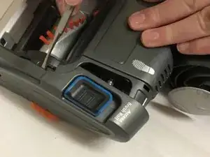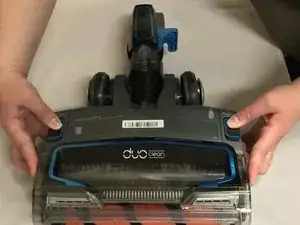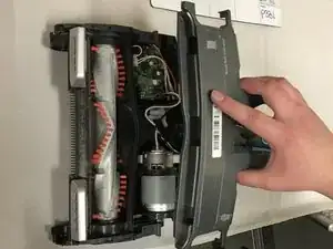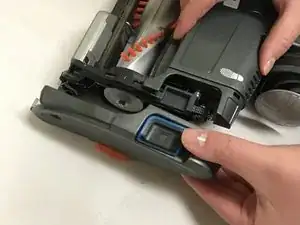 Нажмите и сдвиньте кнопки «доступ к щеточному валу» в сторону текста и снимите пластиковую крышку щеточного вала.