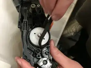 Вытяните резиновый ремень щеточного вала из большой белой шестерни.