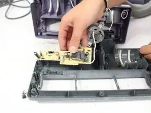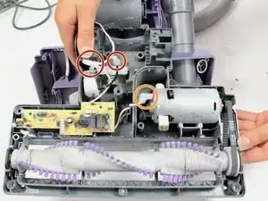Выполняйте следующий шаг медленно и осторожно, чтобы не повредить проводку, соединяющую материнскую плату с остальной частью пылесоса.