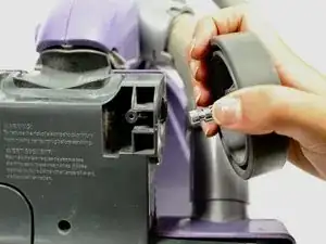 Снимите колёса, вытянув их из осей, отводя их от пылесоса.