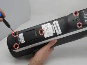 Снимите шесть винтов 10.6 мм с задней части пылесоса с помощью отвертки Phillips #1.