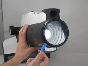 Снимите белую заднюю панель пылесоса.