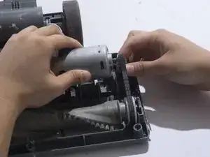 Снимите ремень с шестерни мотора, сдвинув ремень вправо.
