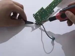 Держа контакт с паяльником, освободите конец провода, оттягивая провод от платы пинцетом.