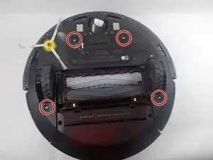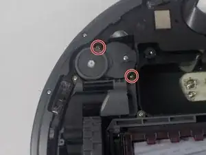 На нижней стороне Roomba используйте отвертку Phillips #1, чтобы удалить два винта 15.5 мм.