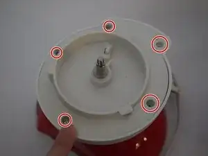 Чтобы разобрать мешалку, выкрутите три винта Филлипс #00, 5,5 мм, ввернутые в пластик. **Третий винт находится за рукой на фото