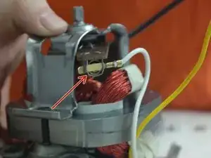 Жёлтый и чёрный провода, расположенные по бокам блендера, удерживают сжатую пружину.