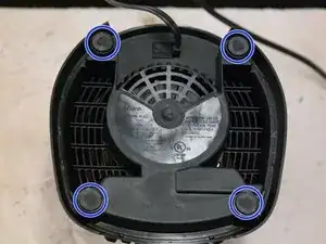 Начните с удаления резиновых ножек, расположенных в углах основания, с помощью отвёртки.