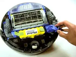 Переверните Roomba вверх дном и выключите его. Используя отвертку Phillips 02, удалите один винт диаметром 3,5 мм из центра боковой щетки.