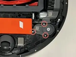 Используйте отвертку Philips, чтобы удалить три винта длиной 10 мм, которые крепят мотор боковой щетки.