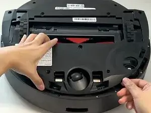 Отключите Roborock и поместите устройство на ровную поверхность колесами вверх.