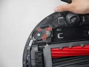 Используйте отвертку Phillips #1, чтобы удалить пять винтов, фиксирующих мотор боковой щетки.