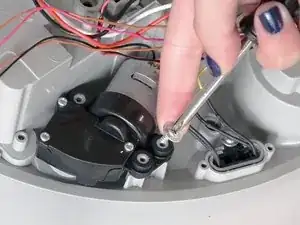 Далее снимите 3 винта, удерживающие мотор боковой щётки в корпусе bObi Pet.