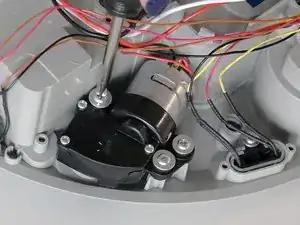 Совместите посадочные отверстия нового мотора с крепёжными штырями и нажмите вниз, чтобы он лёг ровно.