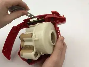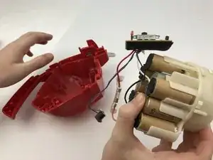 Аккуратно вытащите сборку аккумулятора и мотора. Печатная плата и провода останутся подключенными.