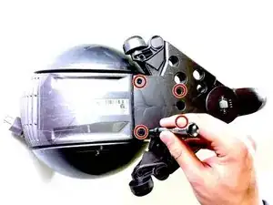 Найдите и удалите пять винтов длиной 22 мм с каждой стороны шара, которые держат пластиковый корпус вместе, с помощью битки Torx T15.