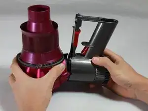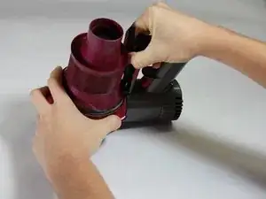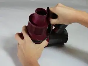 Определите два белых компонента между ручкой пылесоса и прикрепленным компонентом.
