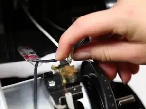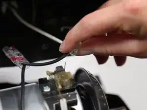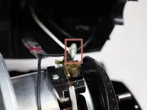 Ухватитесь за белый кабель, соединяющий выключатель питания с мотором. Подойдите как можно ближе к месту подключения к мотору.
