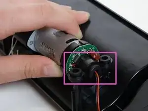 Удалите стабилизатор, прикрепленный к концу мотора, ближе к его контактному разъему, прежде чем вытащить целый блок.