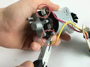 Надежно удерживайте мотор в руке. Используя плоскогубцы, снимите разъемы с мотора.