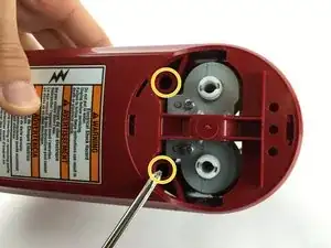 Используя отвертку Phillips 2,remove two 20mm screws holding the bottom plastic piece in place.