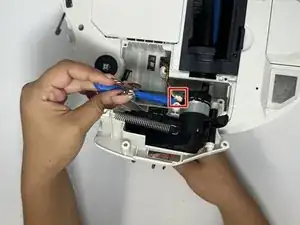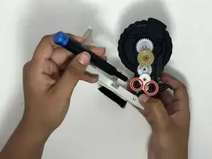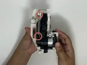 С помощью отвертки Philips #0 снимите два винта по 4 мм, удерживающих мотор на редукторе.