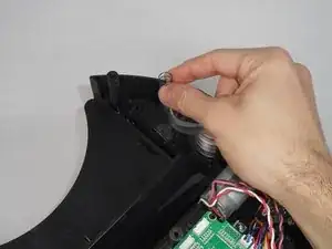 Удалите винт (9.9 мм, Phillips #1) сбоку от мотора щётки.