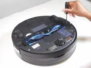 Переверните bObsweep и открутите винт основного валика (13.7 мм, плоская головка) плоской отверткой.
