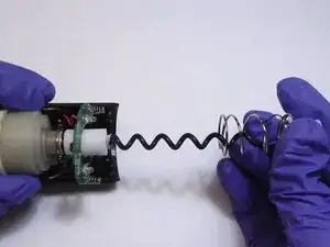 Извлеките пружинный узел изнутри прозрачной пластиковой трубки.