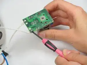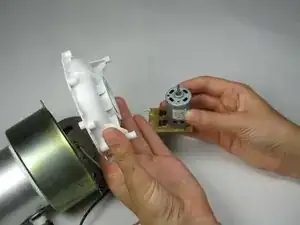 Отверткой Phillips #0 отвинтите два винта 2,5 мм, соединяющие мотор с основанием вентилятора.
