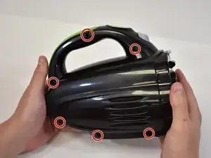 Удалите шесть винтов Phillips #2 диаметром 1,2 мм из ручки и основания.