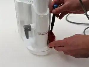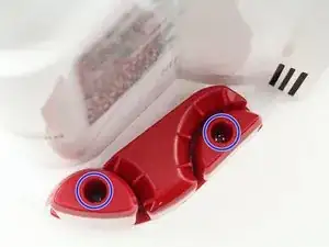 Снимите два винта Phillips #2 длиной 19 мм, расположенных в красном пластиковом элементе за фильтром.