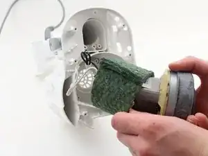 Выньте мотор из основания и сдвиньте изоляцию вниз вдоль проводов.