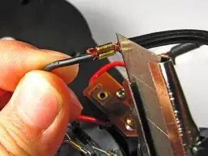 Используйте паяльный набор, чтобы удалить припой с печатной платы для красного провода.