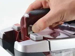 Нажмите кнопку Lift Away и потяните вверх за рукоятку, чтобы отделить верхнюю часть пылесоса от нижней.
