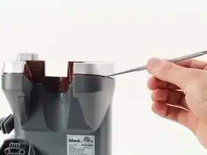 Используйте отвертку T20, чтобы отвинтить четыре винта 14 мм с нижней части пылесоса, поворачивая против часовой стрелки.