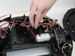 Отключите оставшиеся провода, подключённые к мотору всасывания, и отведите провода в сторону, чтобы не тянуть за них при снятии мотора.