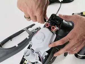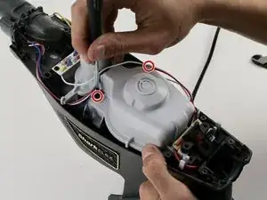 Удалите два винта размером 15 мм, удерживающих крышку мотора, поворачивая против часовой стрелки с помощью отвертки Torx T10.