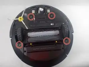 На нижней стороне Roomba используйте отвертку Phillips #1, чтобы удалить три винта размером 15,5 мм.