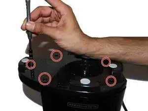 Открутите винты длиной 19,1 мм внутри соковыжималки, которыми моторный отсек крепится к корпусу. Используйте в качестве отвертки насадку под шлиц 2,5 мм. Диаметр головки винта — 7,1 мм.