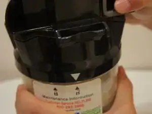Поверните большую чёрную часть циклона/контейнера для пыли вправо, чтобы разблокировать чёрный циклон от прозрачного контейнера для пыли.