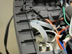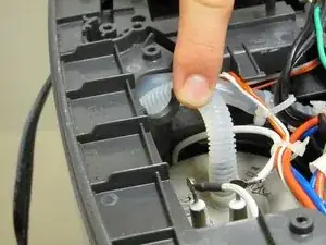 Определите шланг, который соединяется с нагревательным баком. (Обратите внимание, что он удерживается на небольшом крючке.)
