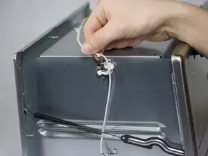 Открутите один фиксирующий винт Phillips #2 длиной 21,9 мм в верхней средней части рамы дверцы.