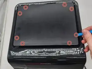 Используйте инструмент для открытия, чтобы надавить на фиксирующие крючки и отключить их, немного поддевая.