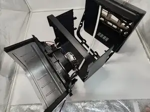 Используйте отвертку Phillips #0 и гибкое удлинение 150 мм, чтобы отвинтить нижнюю пластиковую деталь, соединяющуюся с держателем корзины.