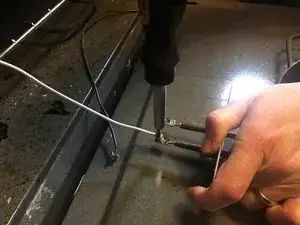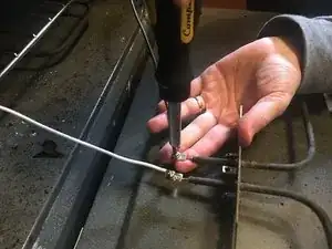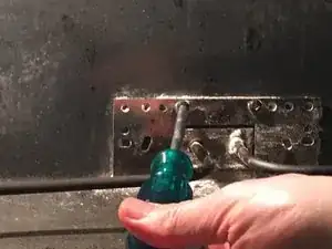 Откройте дверцу духовки и отвинтите винты с головкой Робертсон 5 мм, удерживающие элемент на месте.