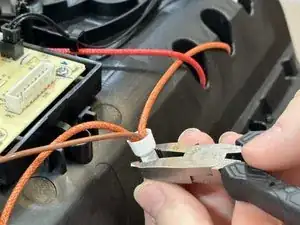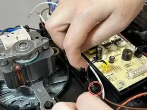 Найдите коричнево-оранжевую жгут проводов спереди аэрогриля и извлеките его.